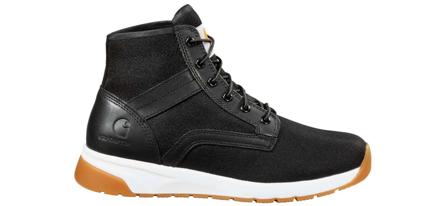 Don’t be fooled by the lightweight comfort of these Force 5-inch sneakers, though. Toughness comes from the oil-tanned leather uppers that feature high abrasion-resistant fabric in order to prevent wear and tear. There are leather reinforced heels for increased abrasion resistance, too. A cement construction is what bonds the outsoles to the uppers for a flexible, secure foundation for your feet. Cement might sound heavy, but it’s not in this case. The lightweight and durable build of this Carhartt men’s footwear makes for a dependable design you can trust.