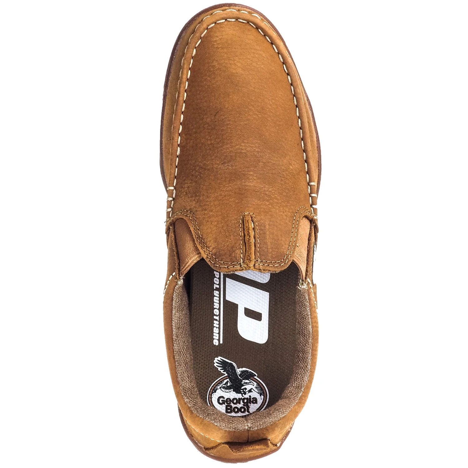 With these great Georgia Boots Cedar Falls Moisture Wicking AMP G050 Men’s Brown Leather Moc Toe Shoes from Working Person’s Store, you get an eye-appealing leather exterior paired with the durability and advanced memory polyurethane insole softness you require and desire. We know you want to add this slip-on footwear to your collection today, so what are you waiting for?