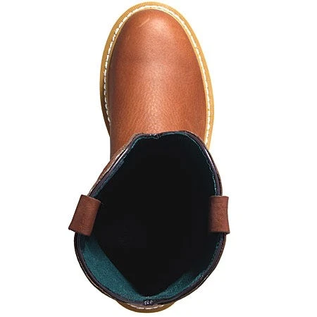 These brown Georgia Wellingtons are made with full-grain leather. The stretchy leather surrounds your feet in weather-resistant strength that’s soft and pliable. Leather is naturally resistant to water and very hard to wear out, which makes it good for boots (and anything else that needs to last).