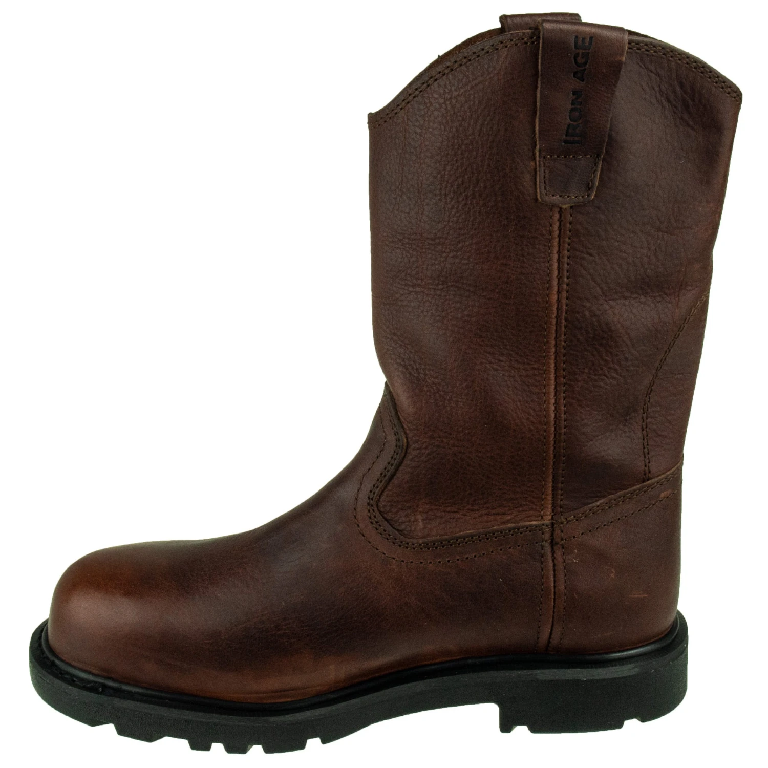 Revolutionize your workday and workwear with these Iron Age IA0195 Brown Internal Met Guard Composite Toe Non-Metallic EH Men’s Wellington Boots.