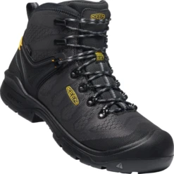 When you spend a lot of time on your feet, it really matters what you have on your feet during the day. Finding balance between protection and comfort can be tough, but not with KEEN Utility shoes. You can enjoy the best of both worlds, thanks to the detailed design of KEEN Utility boots. These heavy-duty leather men’s boots feature waterproof full-grain leather uppers with tough-tec leather. The full-grain resists abrasions naturally and comes from the toughest cut of hide, while still maintaining enough flexibility to keep you comfortable on the job. Backed with KEEN.Dry membrane waterproof technology, your sweat vapors can escape, while moisture cannot penetrate, for cooler, drier feet from the inside out. The metallic hardware is tough enough to survive the heat, cold, and just about whatever else your job throws at your waterproof steel toe boots. Padded collars and tongues ensure a comfortable fit around your ankles with these 8-inch work boots. The patented KEEN Utility rubber toe guard is signature to all KEEN Utility shoes and boots and specifically designed to protect this high-wear area of your safety toe EH boots for a longer lifespan built right into the design.