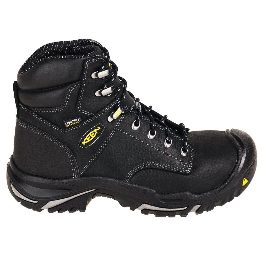You wake up to an obnoxious alarm telling you it’s time to start the work day. In return, you silence the source of annoyance and think about how you just want to close your eyes again. The idea of leaving your cozy, restful slumber to spend your day working is unbearable. Here at Working Person’s Store, we don’t pretend that we have a magical solution to make every work day the equivalent of rainbows and sunshine, but we do have these ~KEEN Utility Mt. Vernon Men’s 1016778 Black 6-Inch Steel Toe Waterproof EH Work Boots. Once you slip your sleepy feet into them, your mood will get just a little bit brighter.