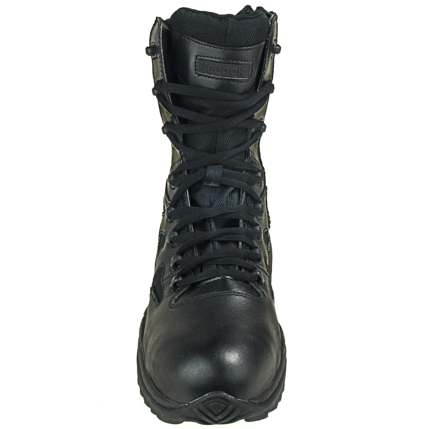 ~These Reebok Men’s Black RB8874 Rapid Response EH Side Zip Composite Toe Military Boots are like military tanks for your feet. No, they’re not heavy or made of metal. Rather, just like military tanks they’re tough enough to move over the roughest terrain. These bad boys will help you, well, beat the bad boys.