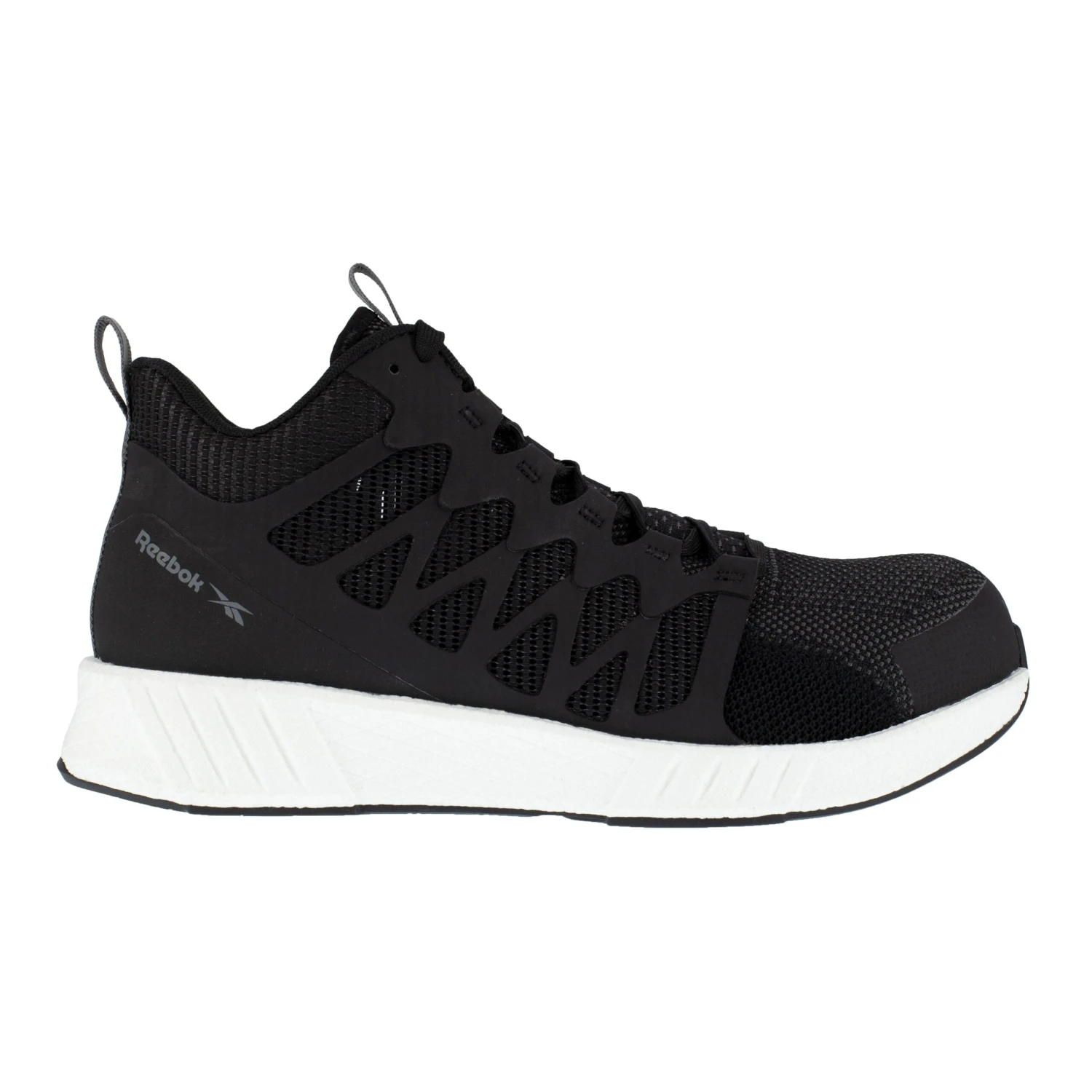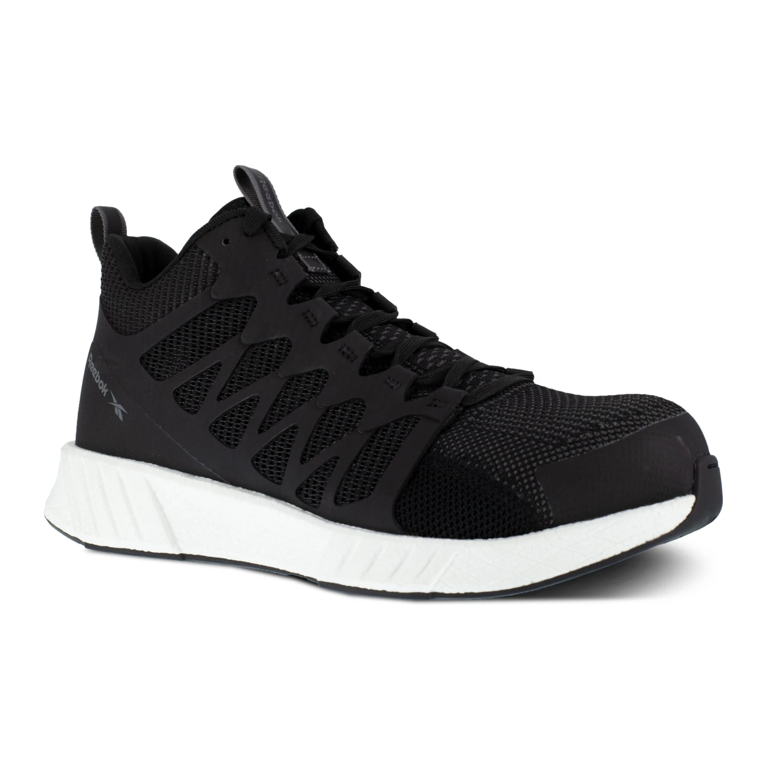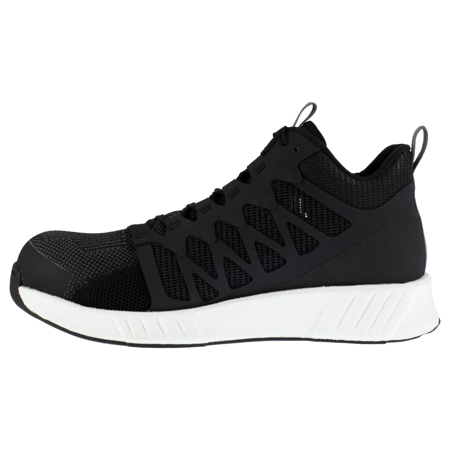 From the soles up, these Reebok Men’s RB4316 Black White Fusion Flexweave Mid Composite Toe Slip Resistant Athletic Work Shoes are built to keep your feet safe. Order your Reebok athletic footwear from Working Person’s Store today!