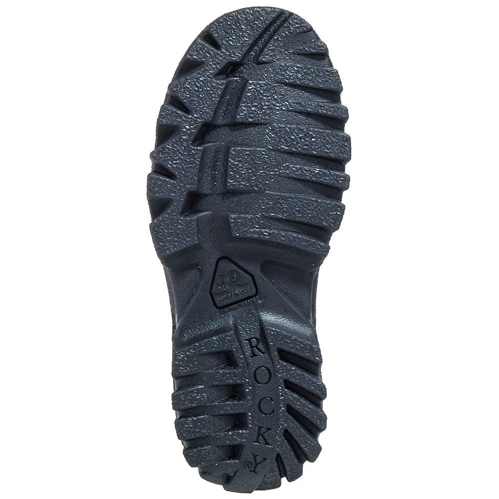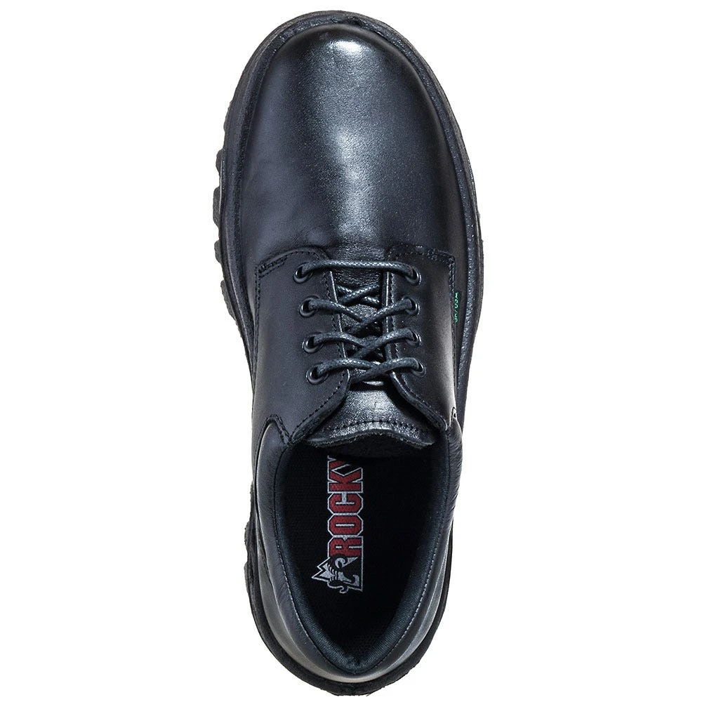 Approved for postal workers to wear, these low-cut black shoes are styled with a sleek look in a fashionable all-black design. The 4-inch uppers of these Rocky shoes are full-grain leather. This rich leather is flexible and comfortable. It’s soft around feet and easy to wear. But full-grain is also wear-resistant. It’s durable, it’s dependable, and it’s polishable, so you can keep your look sharp. The leather is water-resistant and stands up to all those tough conditions that tough workers have to face.