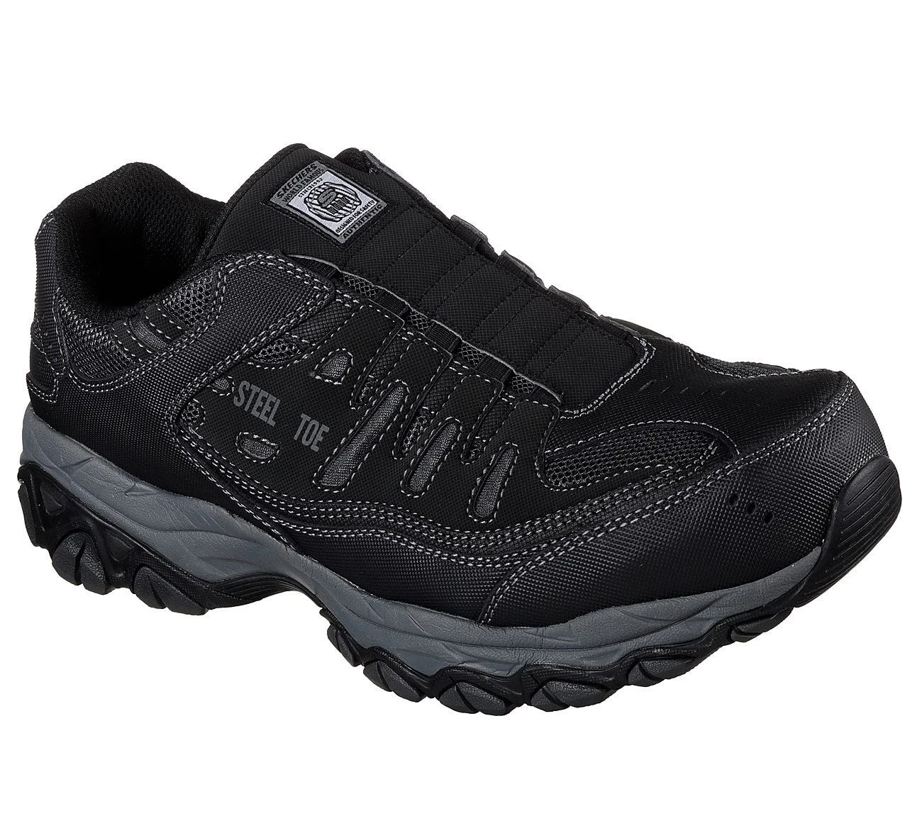 Finding safety toe work shoes doesn’t have to be a difficult process – especially when you shop at Working Person’s Store. With these ~Skechers Men’s 77161 BLK Black Cankton-Ebbitt Steel Toe Athletic Shoes on your hardworking feet, you’ll have a simple way to protect yourself at the workplace. Your feet will also enjoy comfort and style in this men’s Skechers athletic footwear.