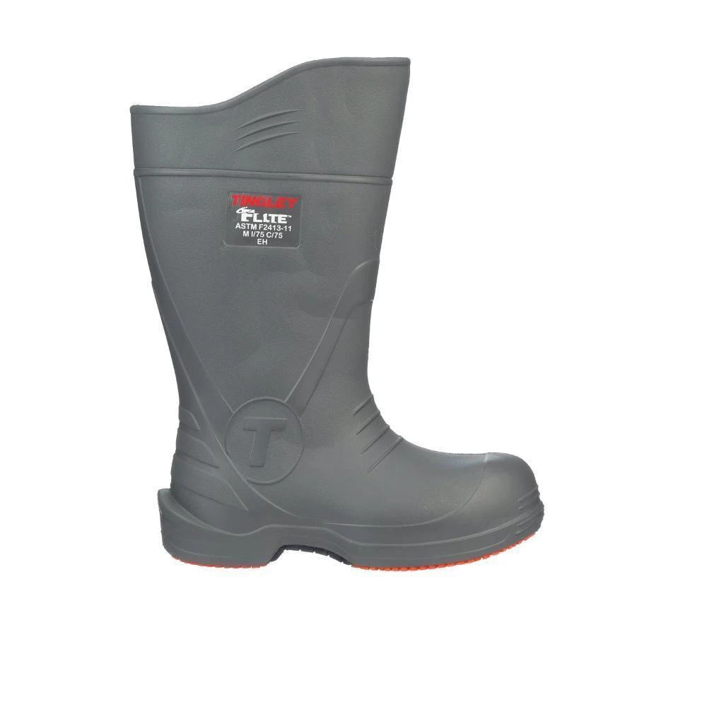 You don’t have to shoot for the stars to get high-quality safety toe footwear…Working Person’s Store has you covered! With these durable ~Tingley Unisex 28259 Grey Orange Flite 15 IN Composite Toe PVC Boots on your feet, you’ll have composite safety toe caps that meet ASTM F2413 M/I/C EH* and will not set-off metal detectors either. This rugged toe protection will guard your toes while you work. Tingley’s Flite® design is “A Revolution in Protective Footwearâ„¢.”